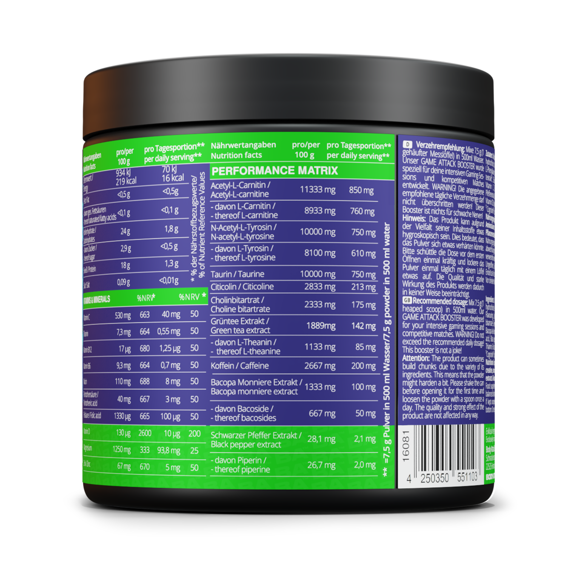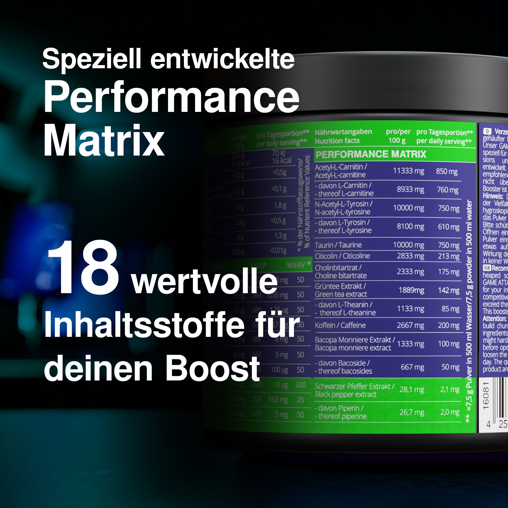 Game Attack wurde speziell für Gamer entwickelt und kombiniert 18 wertvolle Inhaltsstoffe mit 3 Power-Wirkstoffen für maximale Energie, Fokus und Performance – ohne Crash.